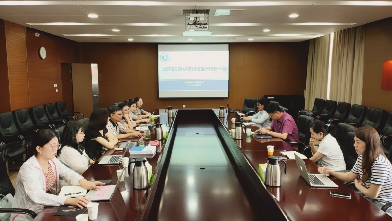 8月4日SKEMA苏州林桦学术校长一行来访,与国际联合审计学院双师课程中方代表郑如、严佳燕、朱翼、王策等老师共同参加了由张文秀副院长主持的交流会议。