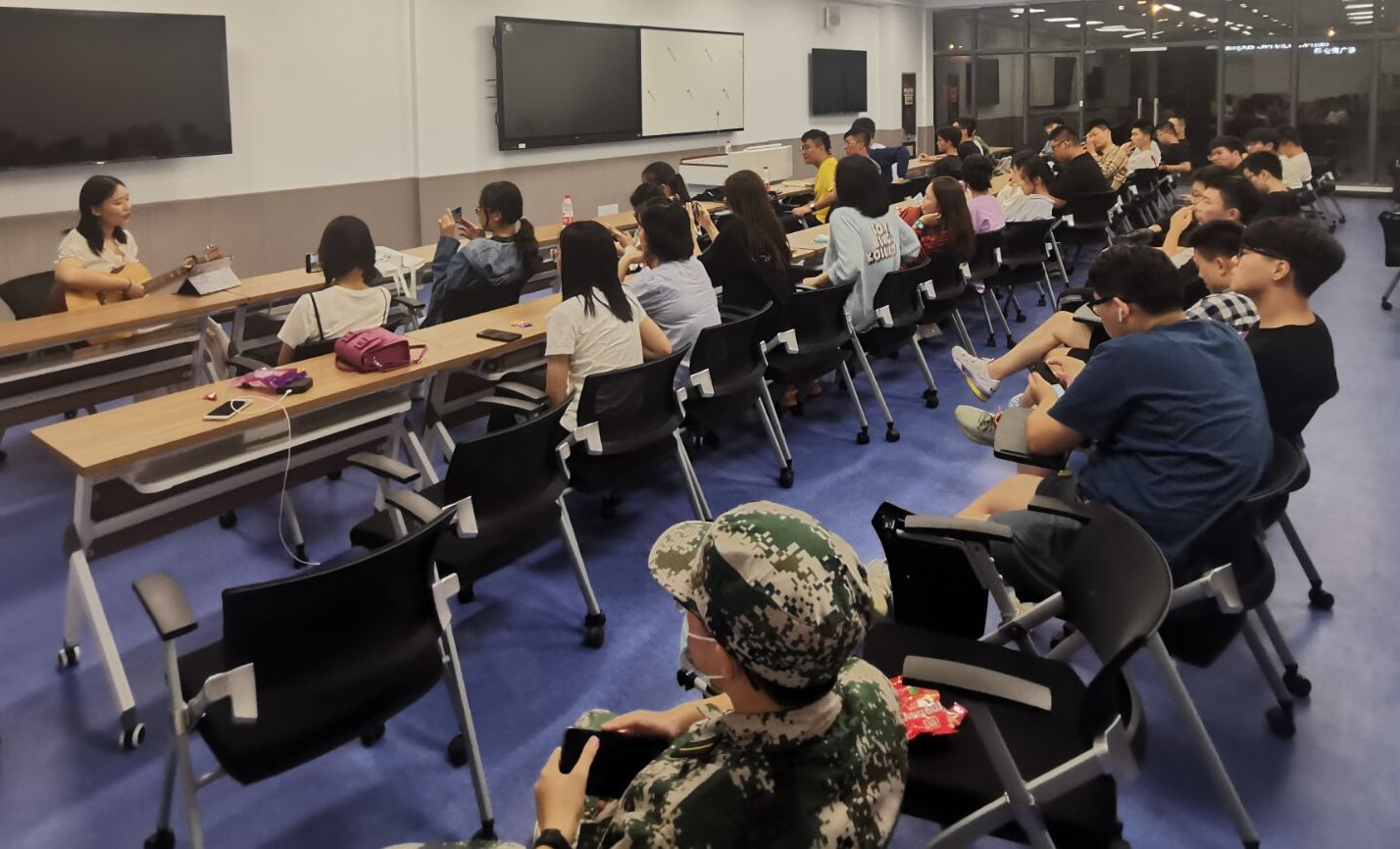 军训期间,国际联合审计学院2020级新生自行组织破冰班会。会上,同学们畅所欲言,积极互动,会场热情洋溢。