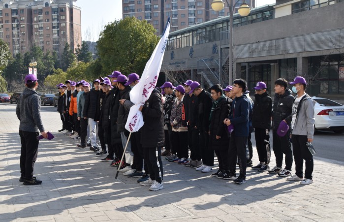 活动开始前,同学们戴着统一的院帽早早地集合完毕,随后齐步走向润泽广场。学院靳镇通老师带领大家一起热身,做好准备活动。