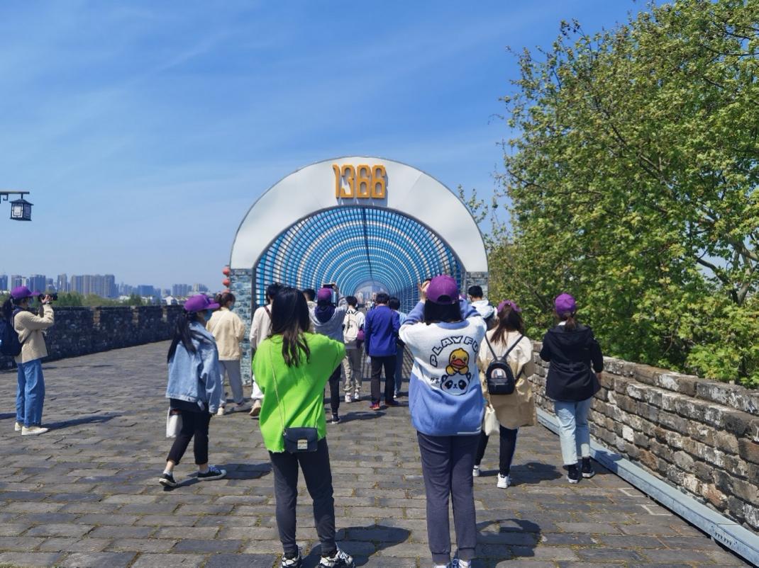 上午9点,同学们从武定门出发,来到中华门,参观明清时期的城墙。南京明城墙是国内保存最长最完好的明代都城城墙,它是南京的重要历史文化遗产,也是南京历史文化名城的重要组成部分。