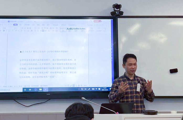 讲座中,葛勇借助中国评论家金仲华在《世界知识》发表的《远东风云中的太平洋》一文,提出“画龙点睛”的标题和开头说明的文字也是校园新闻稿中不可或缺的成分。“万事开头难,一篇好的文章一定是要开门见山,先声夺人”。葛勇指出,校园新闻的选材可以契合正能量、热点话题,新闻的时效性尤为重要。