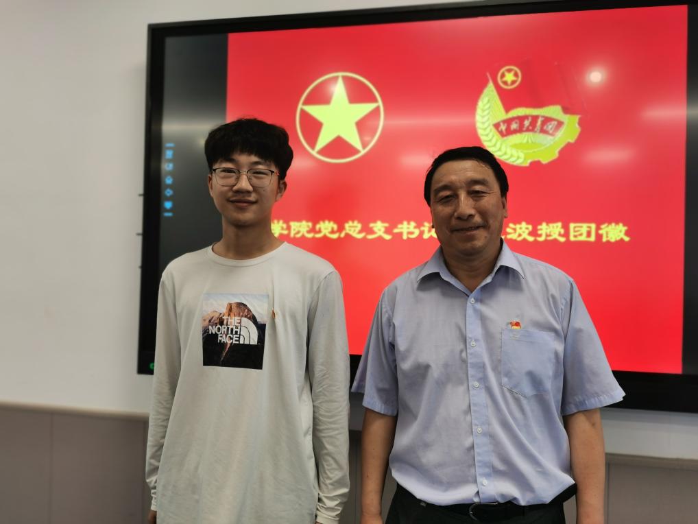 在青共校开班仪式和入团仪式上,同学们共唱共青团团歌并进行宣誓。姜德波为新发展团员授予团徽。