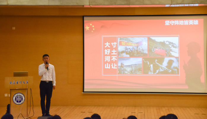 关佳伟同学分享了他选择入伍奔赴边疆保家卫国的心路历程。数年前,高考失利的他无奈被调剂到自己不喜欢的专业,在颓废的生活中逐渐迷失自我。为走出糟糕的状态,改变自己,关佳伟毅然决定去西藏参军,到最艰苦最偏远的地方磨练自己。在极端的高原环境中,关佳伟面对敌人的枪口,亲历与战友的生离死别,对于生命的真谛和朴素的爱国情怀有了深刻的认识。