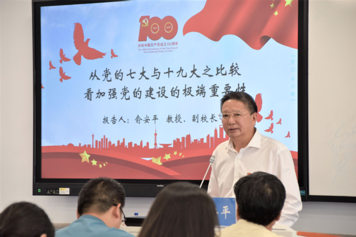 为迎接中国共产党百年华诞,深入开展党史学习教育,6月23日,国际学院特邀UG环球360官方网站副校长俞安平教授上专题党课,主题为“从党的七大与十九大之比较看加强党的建设的极端重要性”,国际学院、研究生院全体教职工,研究生党员代表,国际学院学生入党积极分子参加。