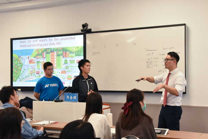 接着,周查理带领同学进行现场案例分析。IIA班陈景楠、李越同学针对“高端人才、高收入人群日常生活缺乏后勤保障”这一需求介绍小组创业创新项目情况,全体参会同学就顾客群体、价值主张等方面进行讨论。现场交流非常热烈。周查理鼓励两位同学当场向参会的同学们“销售”他们的创业想法。随着周查理对两位“创业者”的不断提问和交流,他渐渐地引入了“商业模式”的概念,引导同学们从更全面的角度考虑自己的创业项目。