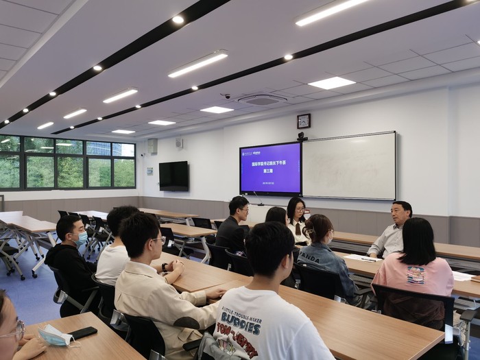 2021年10月13日下午,国际学院召开第三期国际学院书记院长下午茶,本次座谈会主题是“转专业同学的职业规划”,由国际学院党总支书记姜德波主持,11名学分绩点3.5以上、成长积分列各专业前10%的转专业学生参加,成长导师靳镇通旁听。