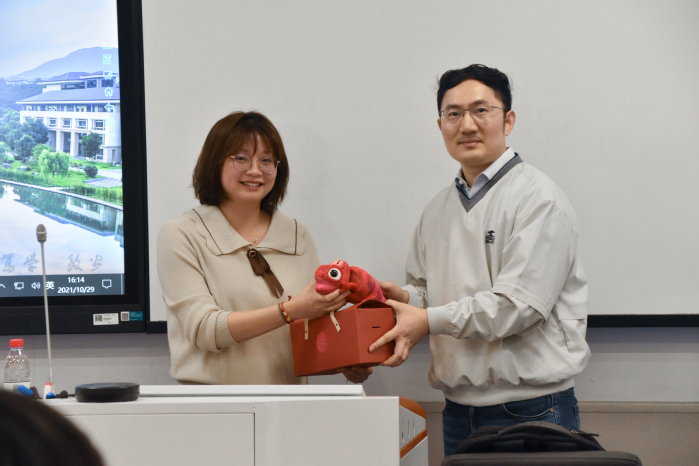 会议最后,蔡宇杰代表活动主办方感谢杨理瑜老师的精彩讲座,并赠送了精美礼物——SKEMA商学院的吉祥物Leon。