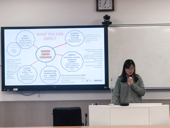 刘静详细分享了如何正确充分的使用SKEMA资源:所有国际联合审计学院的学生都可以使用个人账号登陆SKEMA官网,访问所有内部资源和实时学术信息。同时,同学们还可以在KCenter(Online Library)找到学术文献、新闻报刊、电子书籍、市场研究以及SKEMA商学院知名教授的联络方式等各种信息。