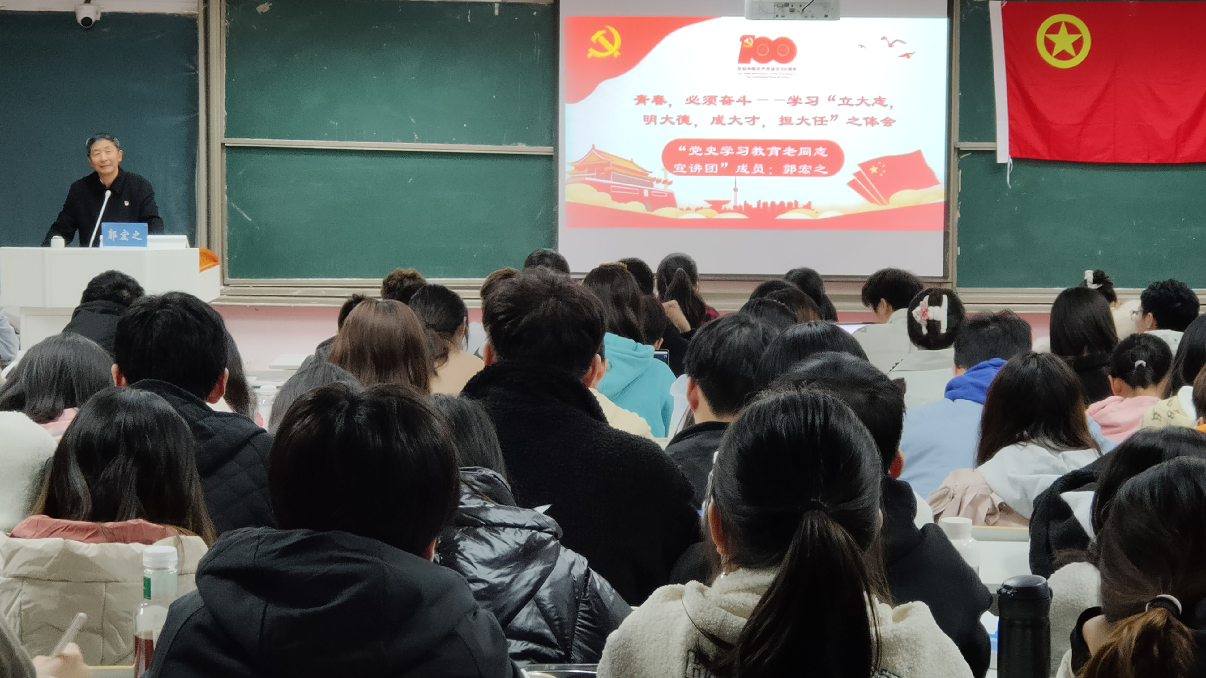 11月11日晚,国际联合审计学院特邀校“党史学习老同志宣讲团”郭宏之老师上信仰公开课,主题为“青春,必须奋斗——学习‘立大志,明大德,成大才,担大任’之体会”。国际联合审计学院党总支副书记王静、学院全体入党积极分子及其它书院部分同学参与听讲。本次信仰公开课由学院分团委书记朱明洁主持。