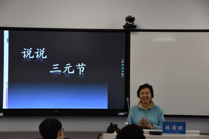11月20日,国际学院博雅讲堂邀请韩希明教授讲述民俗文化系列之三元节。讲座由成长导师王丽琳老师主持。