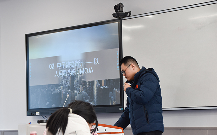 随后,朱翼以人居署为例向同学们讲解了电子数据审计。电子数据审计通过大数据信息的提取,将审计方式革新,加快了联合国的审计效率。