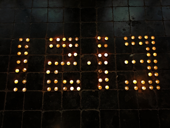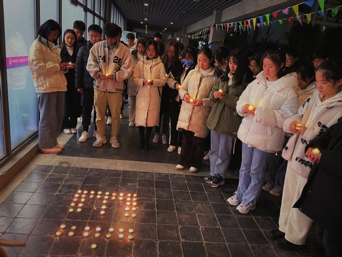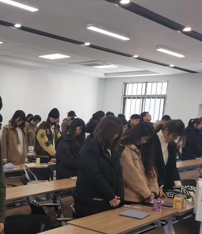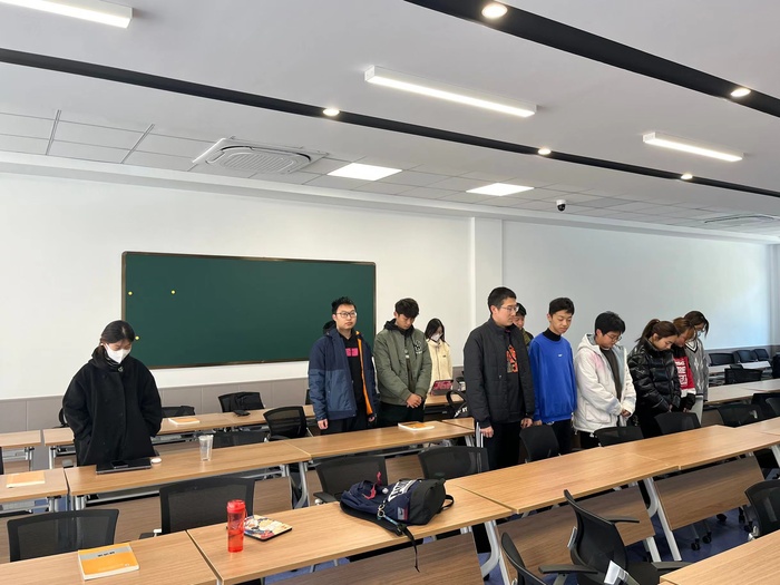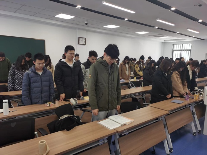 上午10时,学院集体组织观看国家公祭仪式。当警报拉响,四处开始鸣笛,所有人都停下手中的事情,安静了下来。这一分钟,伫立、默哀。