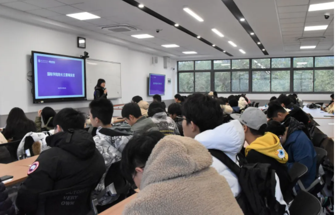 院领导向2020级同学们阐述了“4+0”本科双学位的含义和优势,并强调了通过努力提升托福成绩取得法方文凭的重要性。领导们特别针对任务清单中“完成托福首考“一项提醒同学尽早初考,避开春节时段,并给同学们提供了寒假提升托福成绩的资源,建议通过线上平台,例如”小站托福“进行学习。此外,还指出,作为法国交换生项目的衡量标准之一,在寒假提升托福成绩很有必要。