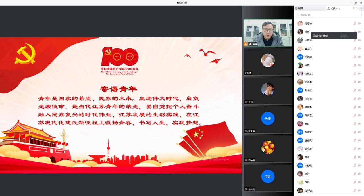 最后,盖幢幢结合学生实际,对同学们提出三点要求:一是政治上要过硬,牢固树立“四个意识”,讲政治立场、政治方向、政治原则、政治道路,严格遵守党的政治纪律和政治规矩。二是谨言慎行,时刻注意自己的言行举止,不发表不当言论,不引发网络舆论。三是“争当表率、争做示范、走在前列”,协调好自己的学习、生活和工作,学会控制情绪,解放思想、实事求是、开拓创新。他提醒同学们常看人长处、帮人难处、记人好处,努力实现自我成长,为“强富美高”新江苏现代化建设贡献自己的力量。