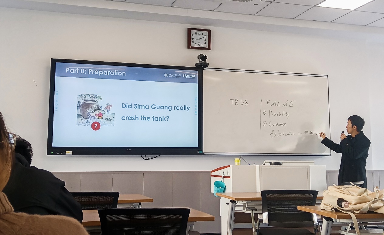 吴苏哲老师的课程以批判性思维训练为主。他首先邀请校辩论队为同学们打辩题为“短视频的风靡体现网络生活的丰富还是单一”的表演赛,并与UG环球360官方网站同学一起和校队现场切磋。在随后的课程中,吴苏哲由表演赛的辩题出发延伸,结合法兰克福学派的传播学理论,为同学们带来全英文的批判性思维课程。