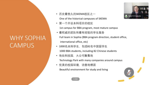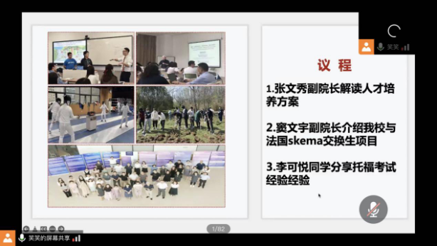 接着,窦文宇副院长向学生介绍了学院与SKEMA商学院共同提供的交换生项目机会。窦文宇院长通过自己的个人教学经历,鼓励学院学生积极参与海外交换学习。海外交换学习不仅能带来智力和认知上的提升,更是一个难忘的经历。他从师资力量、学期安排、社团支持、生活安全等各方面向同学们全面介绍了SKEMA商学院索菲亚校区的入学和生活方式。他希望更多国际学院的同学能够放下顾虑,积极参加交换生项目。