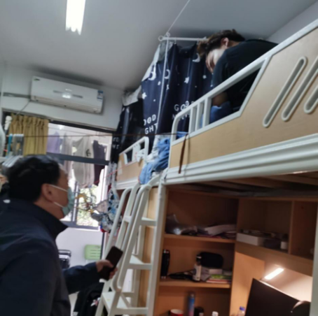 “目前在宿舍的学习生活还能适应吗?”“网络是否畅通?”“晚上几点睡觉?”……学院领导班子和辅导员老师关心学生状态和需求,每天走访宿舍,做到全覆盖。一方面查看线上上课情况,要求学生离开床铺,坐到书桌前上课;另一方面提醒学生养成良好作息习惯,宿舍保持通风和卫生整洁。院领导同时也收集了同学们网课遇到的问题,及时沟通、反馈、解决。