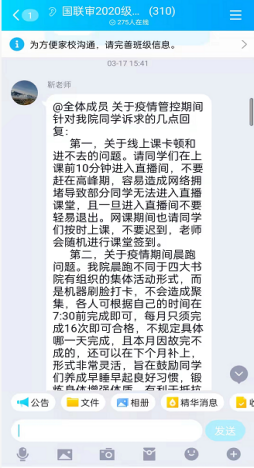 疫情就是命令,防控就是责任,坚持就是胜利!国际学院上下一心,平稳有序地开展各项工作,努力做到让同学们情绪有出路,疑问有答复,学习有干劲,生活有保障,传递温暖,共克时艰!