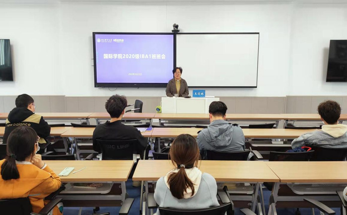 国际学院导师王丽琳给2020级IBA班学生上班会课