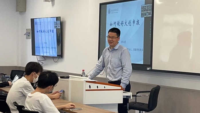 随后,他从“申报选题、组队建议、申报书撰写”三个方面为同学们讲解如何做好大创项目申报。