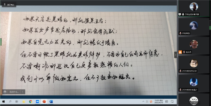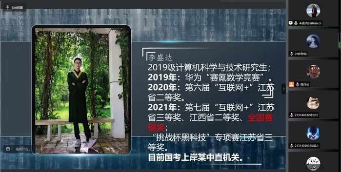 韩旭指出,在疫情防控背景下,学生需提高自觉性,利用好课余时间,结合自身能力和实际情况多多思考,尽早为参与竞赛做好准备。他认为,在大数据时代,拥有卓越的计算机技术以及优异的创新思维的人才是当今社会之需;同学们可以在竞赛中成长,在竞赛中进步,不断提升自我能力。