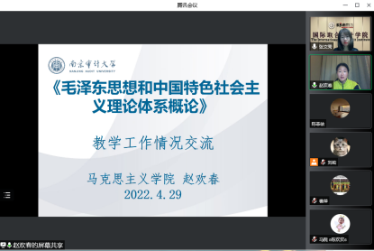 马克思主义学院赵欢春教授分享了本学期《毛泽东思想和中国特色社会主义理论体系概论》线上教学体会。她围绕“研究型学习在教学环节的设计与实施”的主题,从整体性设计、精细化部署、掌控好节奏、记载好过程、师生共情五个方面,详细介绍了线上教学的实施情况与教学效果。她表示,对于研究导向型这一创新型教学方式,与传统教学要求甚为不同,马克思主义学院的教师们在努力探索中实践,在认真实践中提升。