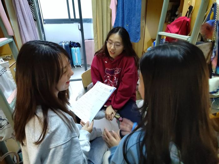 国际联合审计学院2021级IIA3班学习委员徐子惠分享了自己的一些志愿经历,向同学们讲述了自己做志愿的时候一些有趣的事和一些暖心的瞬间,鼓励室友积极参与到志愿服务中去。她说:“之前在苏州做志愿者的时候,站在医生的旁边帮他们搭把手,缺啥就帮他们及时填上,饭点的时候,因为凳子不够,几个人就找纸箱随便铺一下,大家围在一起吃饭,互相拉拉家常,辛苦之余也增添了不少乐趣。”