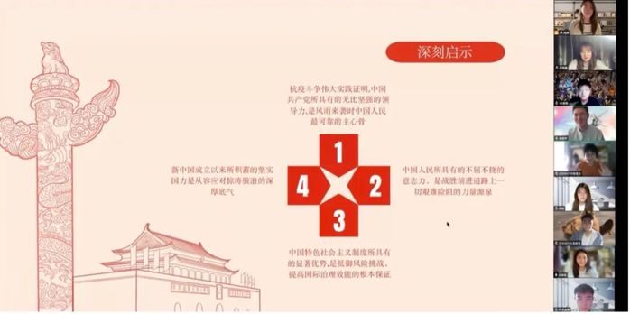 2020级IBA2班团支书和班长对本次会议的团队协作、热点分享、心理疏导、活动组织四个方面进行了总结——中国的发展从来都是通过应对一个又一个挑战不断前进。学习两会报告等具体内容,让同学们更加深刻地体会到党带领我们在建设伟大中国梦的进程中,一步一个脚印努力实现民族复兴的艰辛和不易,也让同学们更加坚定了抗疫的信心和决心。