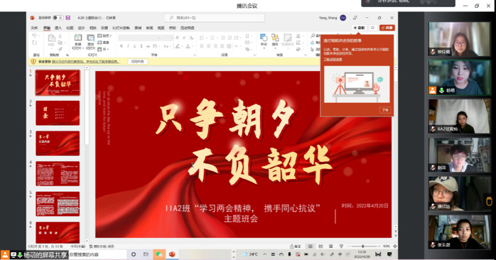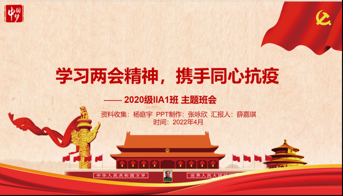 为切实加强疫情防控期间学生思想政治教育工作,积极引导广大学生把疫情当作教材、把困难当作磨砺,国际联合审计学院于4月15日至4月24日开展“学习两会精神,携手同心抗疫”系列主题教育活动。学院各个班级团支书带领班级同学们开展了线上“学习两会精神”主题班会,同学们留下了深刻的会议感悟。