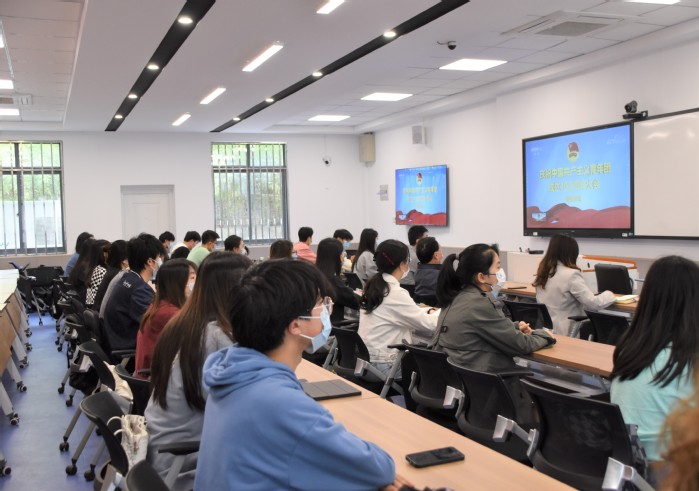 在中国共产主义青年团成立100周年之际, 5月10日上午,国际学院党总支和分团委组织教师和学生代表集中收看“庆祝中国共产主义青年团成立100周年大会”实况。
