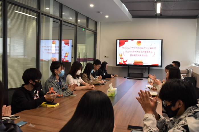 下午,国际学院召开师生座谈会,畅谈学习习近平总书记在庆祝中国共产主义青年团成立100周年大会上重要讲话的心得体会。