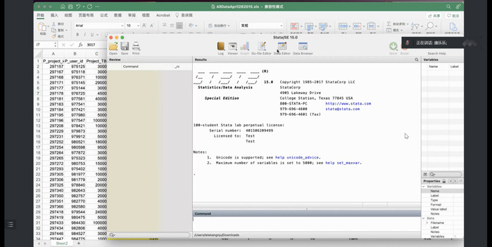 随后,康教授通过案例展示,运用STATA等软件对数据进行回归分析,十分细致地引导同学们不断思考每一组数据的来源及走向,并教授同学们如何根据具体的研究问题,建立自己的回归模型。