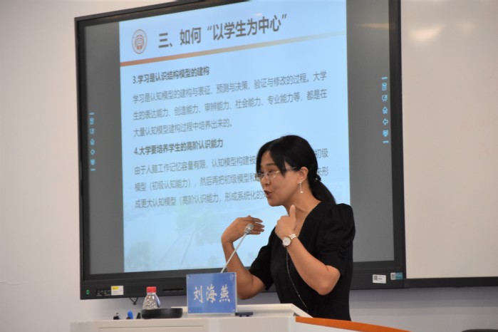 教育学博士刘海燕研究员从为何“以学生为中心”,何谓“以学生为中心”,以及如何“以学生为中心”三个方面与大家进行了分享,并从有效教学原则、课程教学设计、教学方法创新和课堂教学评价等四个方面提出了以学生为中心的教学的实践路径。