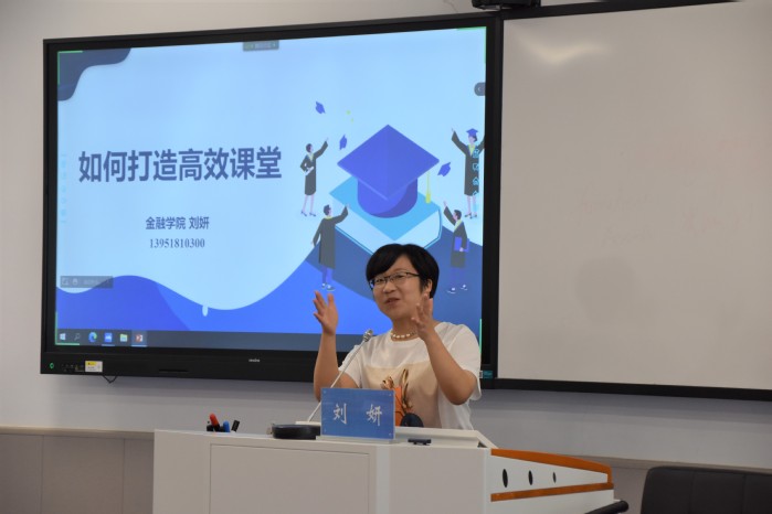 江苏省高校教师教学创新大赛正高组特等奖获得者、金融学院副院长刘妍教授与大家分享了自己对“如何打造高效课堂”的理解。刘妍指出,教师要了解学情和教学“痛点”,不断更新教学理念,创新教学模式。她结合《保险学》课程教学,围绕教学目标、师生角色、教学时空、知识维度、多元评价等方面阐释了“五圈层”教学模式的创新实践。
