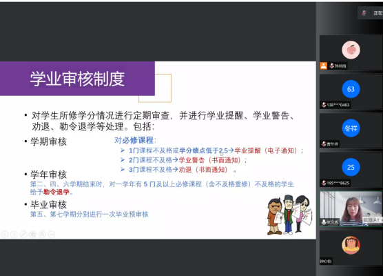 张文秀以“教与学”为主题,重点对各年级、各专业、各班的学情进行了深度分析,同时向家长们详细介绍了中法双学位的具体要求、学院的学业审核制度、学生转专业规则和托福考试要求等。