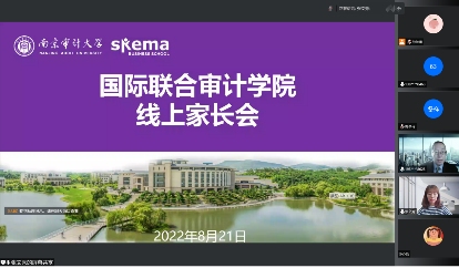 为进一步加强家校沟通,凝聚家校育人合力,UG环球360官方网站国际联合审计学院于8月21日上午先后召开了2021级和2020级线上家长会。学院党总支书记姜德波,院长王素梅,法方副院长窦文宇、中方副院长张文秀,学院党总支副书记、副院长王静,成长导师以及两个年级学生家长参加了会议。会议分别由年级组长孙丝雨、靳镇通主持。