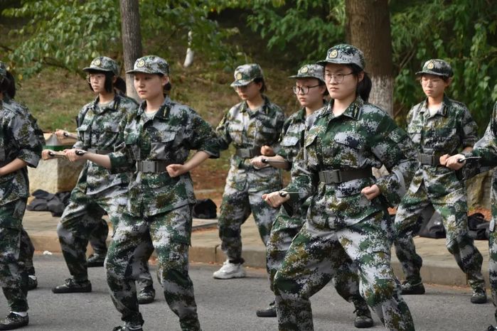 防卫技能训练同学们也一丝不苟地完成。挺胸、抬头,齐步走,这里是国际联合审计学院“girls power”!