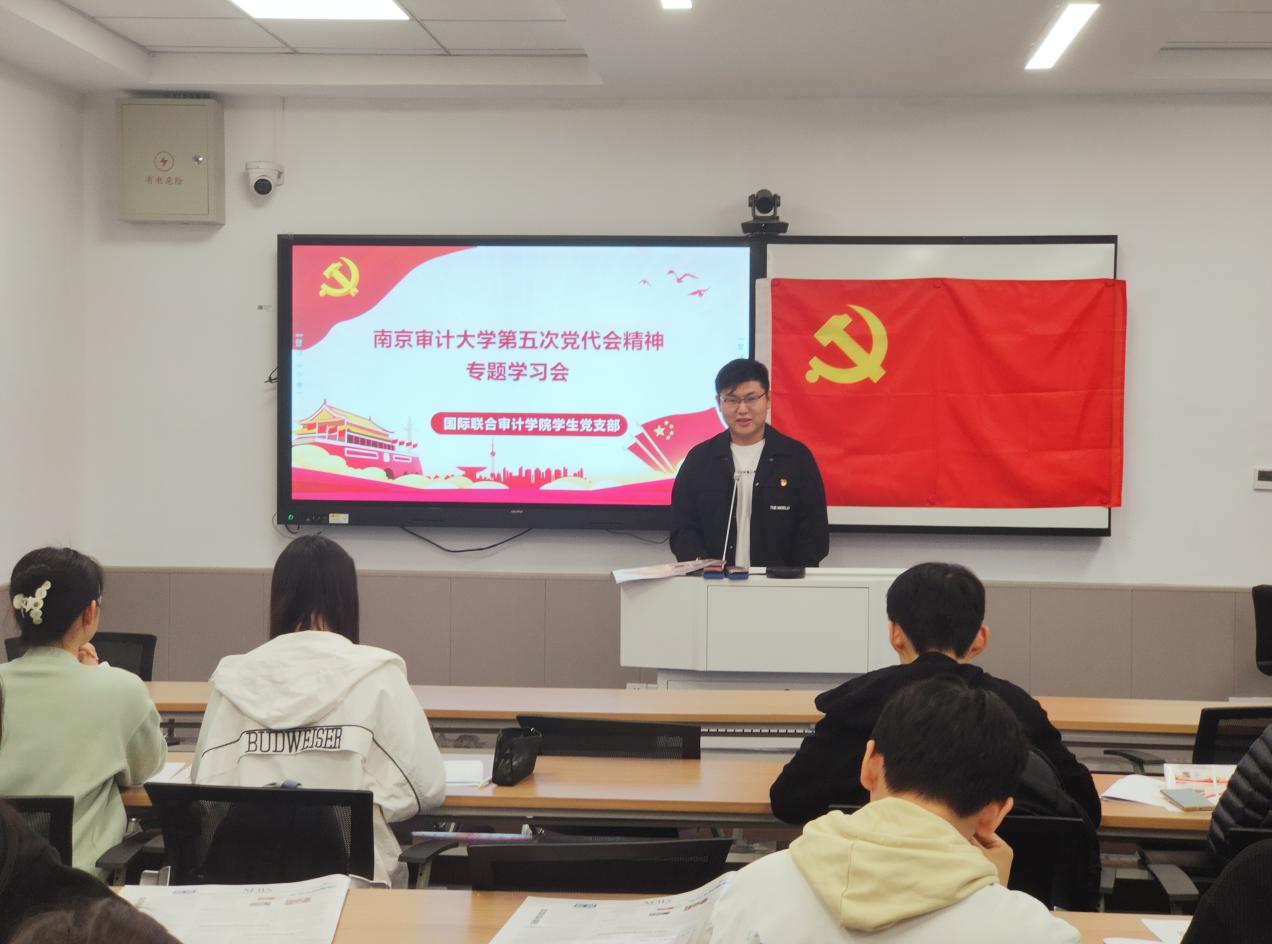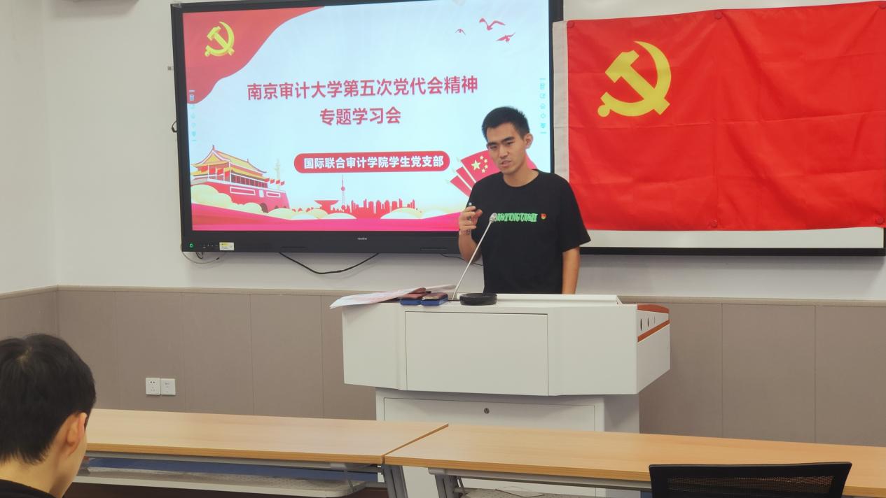 2022年10月5日,为深入学习贯彻学校第五次党代会精神,加强党员党性修养,国际联合审计学院学生党支部在A107教室开展专题学习会。会议由学生党支部书记朱明洁主持,学生党支部全体党员参加会议。