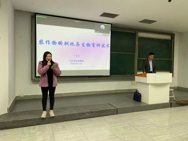 2022年11月21日晚,在竞秀楼第一报告厅,江苏省农垦农业科学研究院副院长叶凌凤博士为国际学院的同学们带来了主题为“农作物的驯化与生物育种技术”的讲座,由国际学院副书记王静主持。国际学院2021级、2022级的同学通过线上线下同时参与,聆听了一场别有生趣的劳动理论课。