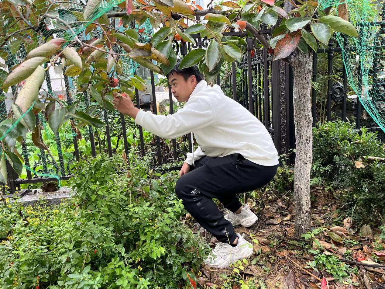 一边唠家常一边品尝同学们亲手采摘的柿子