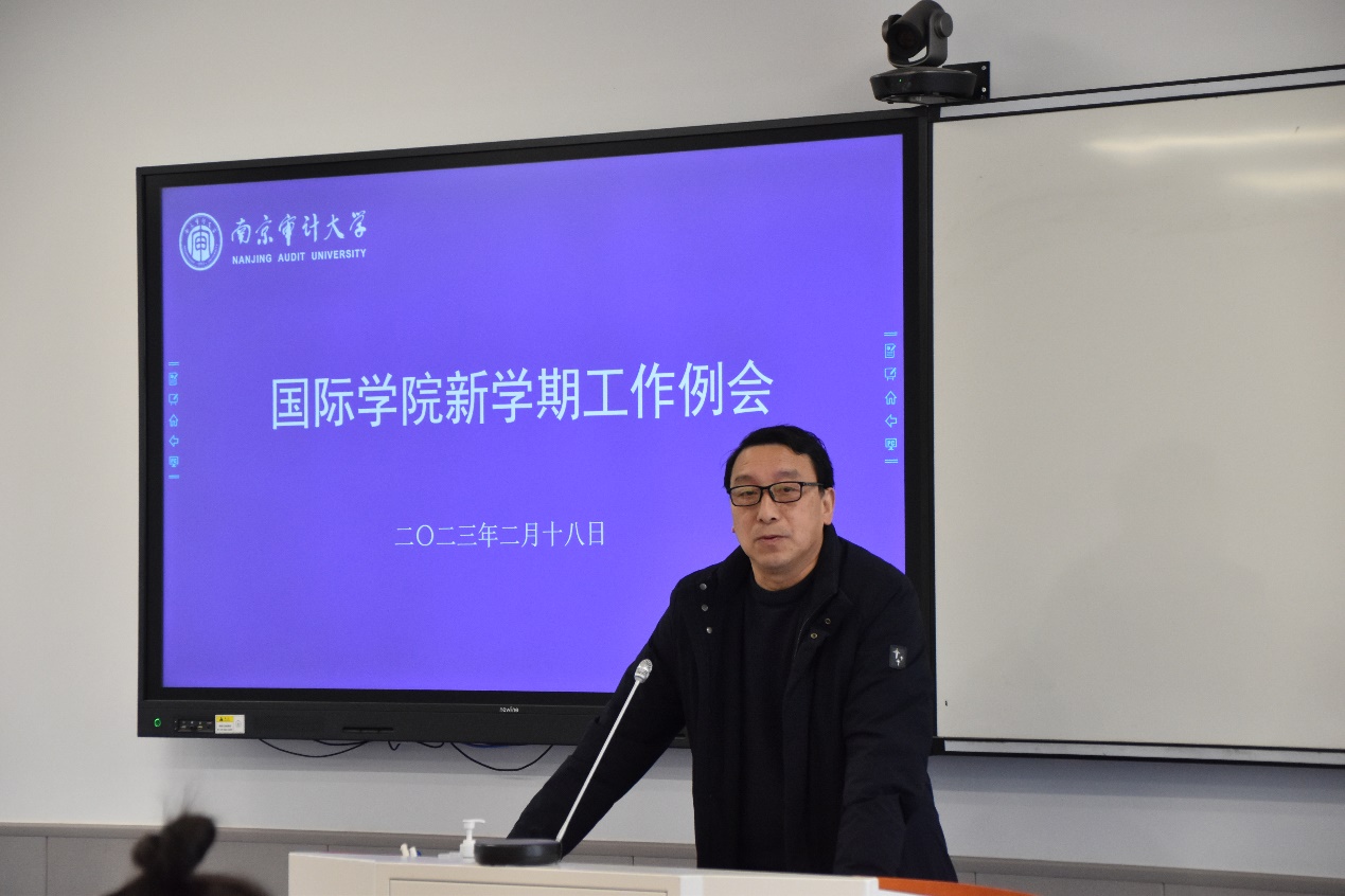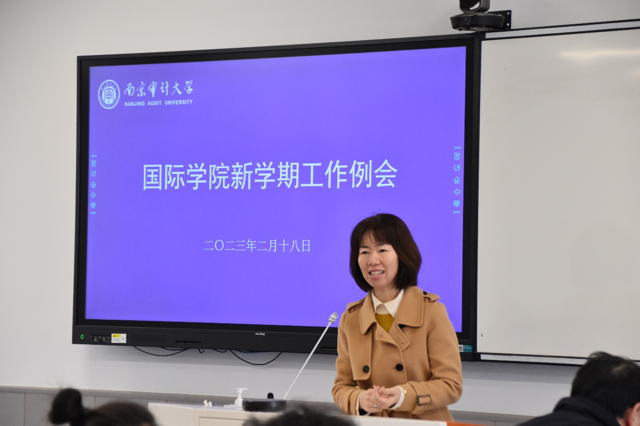立足新起点,砥砺新征程。2月18日上午,国际学院召开2023年新学期工作例会,国际学院全体领导班子、教职工参加。会议由王素梅院长主持。