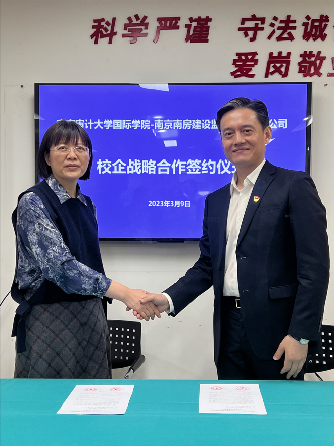 为加强校企合作,充分发挥双方优势,培养更多高素质人才,为学生实习、实训、就业提供更大空间,3月9日,UG环球360官方网站国际学院与南京南房建设监理咨询有限公司举行签约仪式。南房建设监理咨询有限公司总经理张弘景、党支部书记屠卫民、常务副总经理韩冬、副总经理谢倩以及国际学院领导班子出席签约仪式。