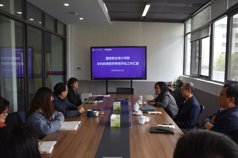 学院院长王素梅对照本科教育教学审核评估指标体系,对国际联合审计学院教育教学工作的理念、措施、成效和不足等方面进行了汇报。
