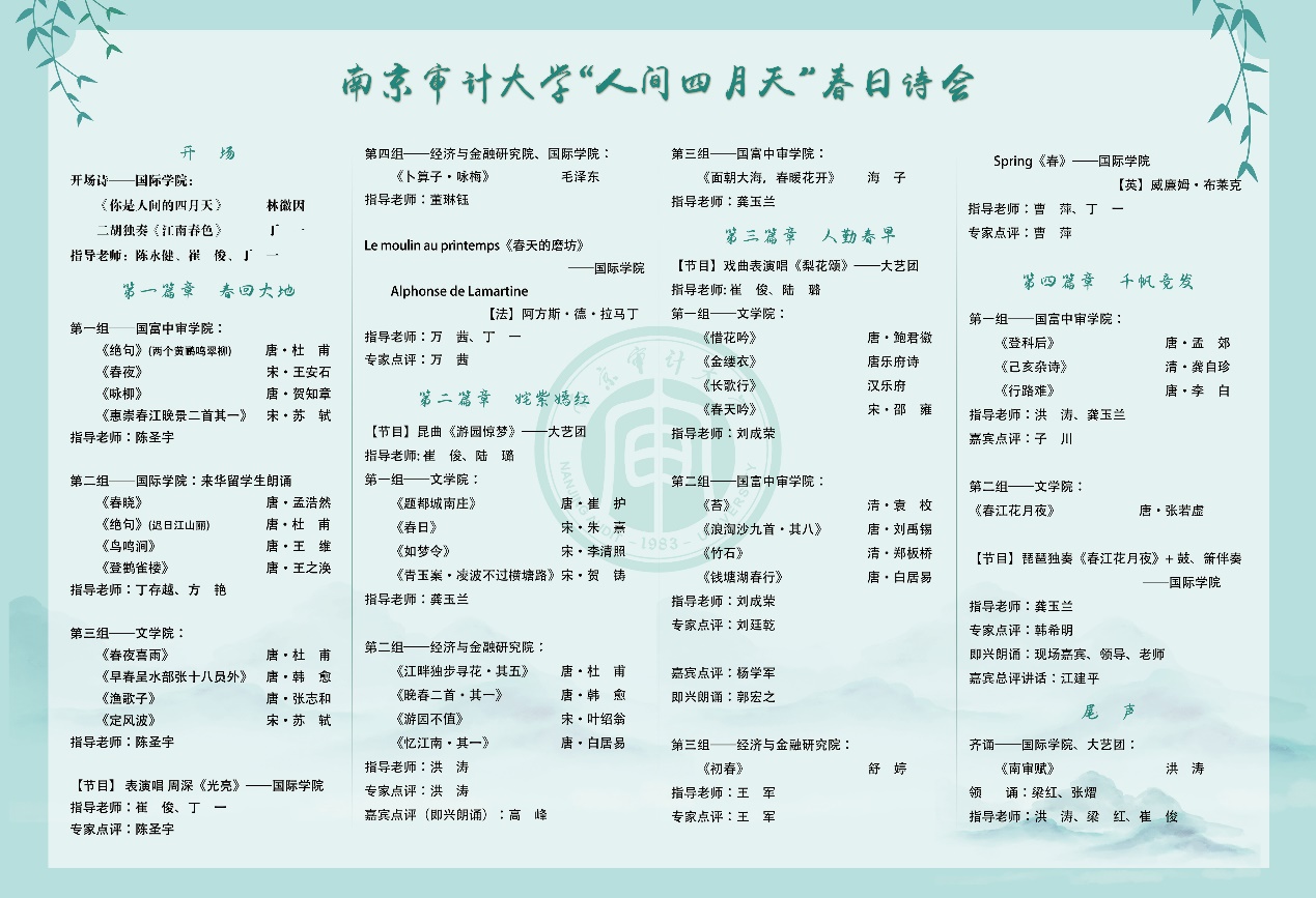 四十载栉风沐雨,四十载风华正茂。春日诗会的尾声,八十余位同学和老师们齐诵《南审赋》。 “人间四月天”春日诗会圆满结束。