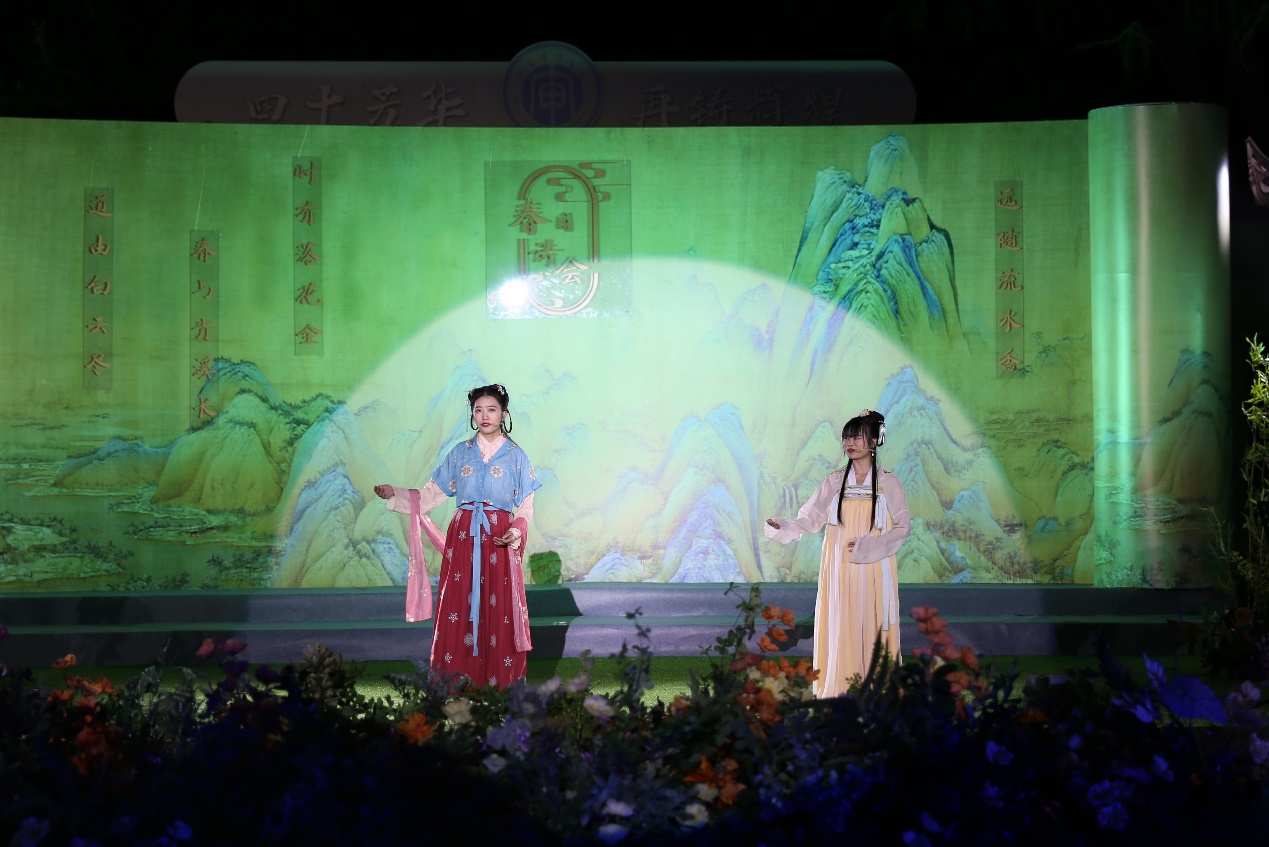 开场诗《你是人间的四月天》奠定诗会基调,配以二胡独奏《江南春色》,尽显春意盎然。