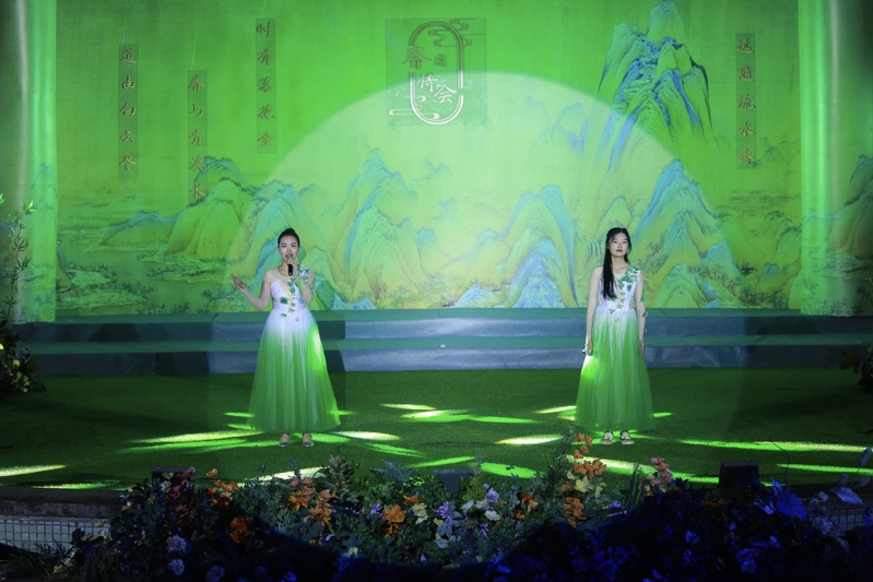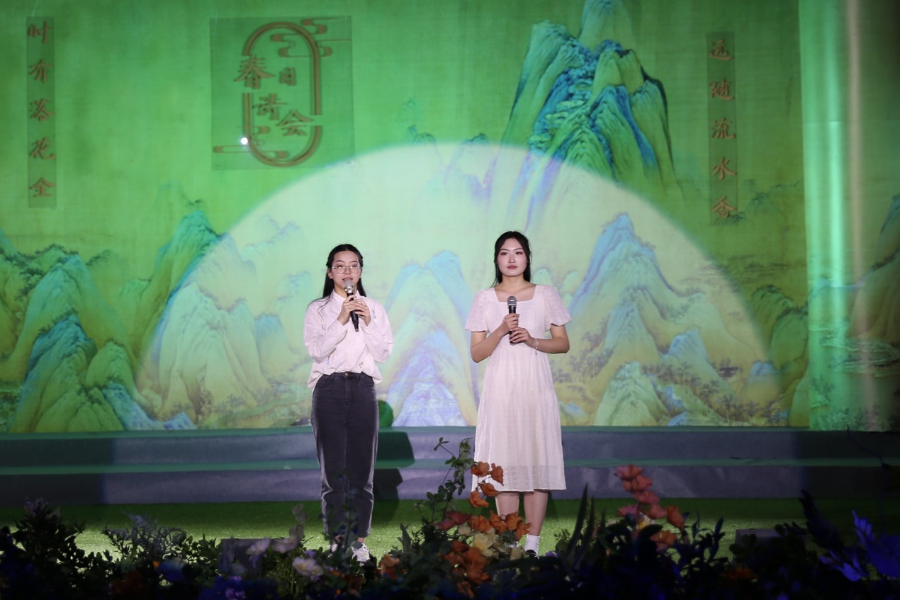 文学院的同学朗诵《春夜喜雨》《早春呈水部张十八员外》《渔歌子》《定风波》,迎接春意,动人心扉。