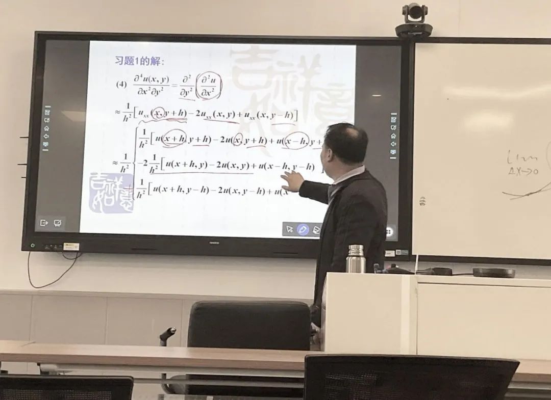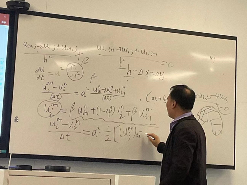 最后,许秋滨通过热传导方程和波动方程的实例,向同学们进一步讲解了如何实现差分方程的转化与应用。
