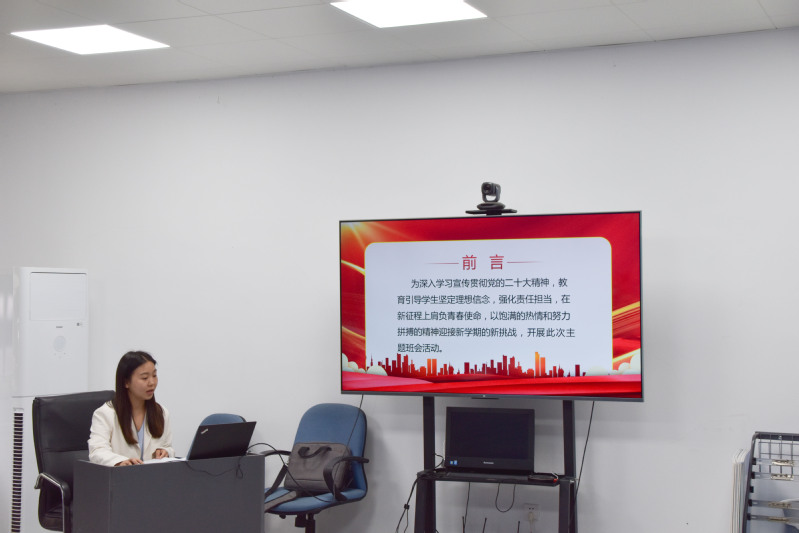 辅导员张莹玥,以“青春践行二十大,踔厉奋发向未来”为主题,重点领学党的二十大报告中对教育、科技、人才的论述。引导学生思考“个人梦”与“中国梦”的关系,立志做有理想、敢担当、能吃苦、肯奋斗的新时代好青年。并且立足国际学院办学目标,引导青年学子站的更高、看得更远。
