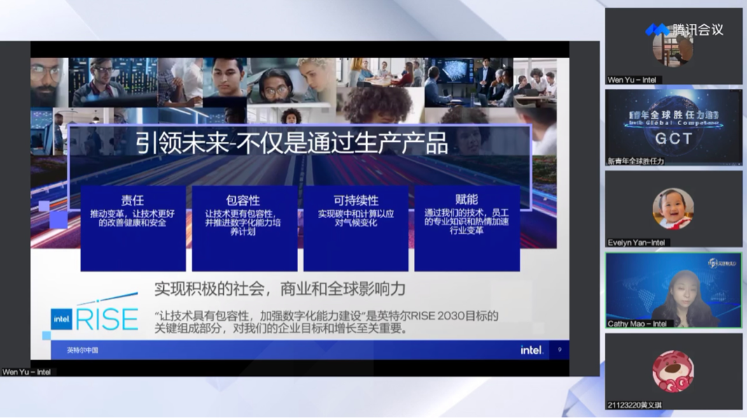 接下来,毛琴介绍了英特尔(中国)的发展历程。秉承植根中国、服务中国、共同发展的理念,英特尔从进入中国以来不断发展壮大,到如今中国员工总数已超过12000人。它用技术“超级力量”架起了物理和数字世界的桥梁,致力于改善并提高人类的生活质量。她指出,加强数字化能力的建设是英特尔公司2030目标的关键组成部分,这对企业目标和效益增长至关重要。