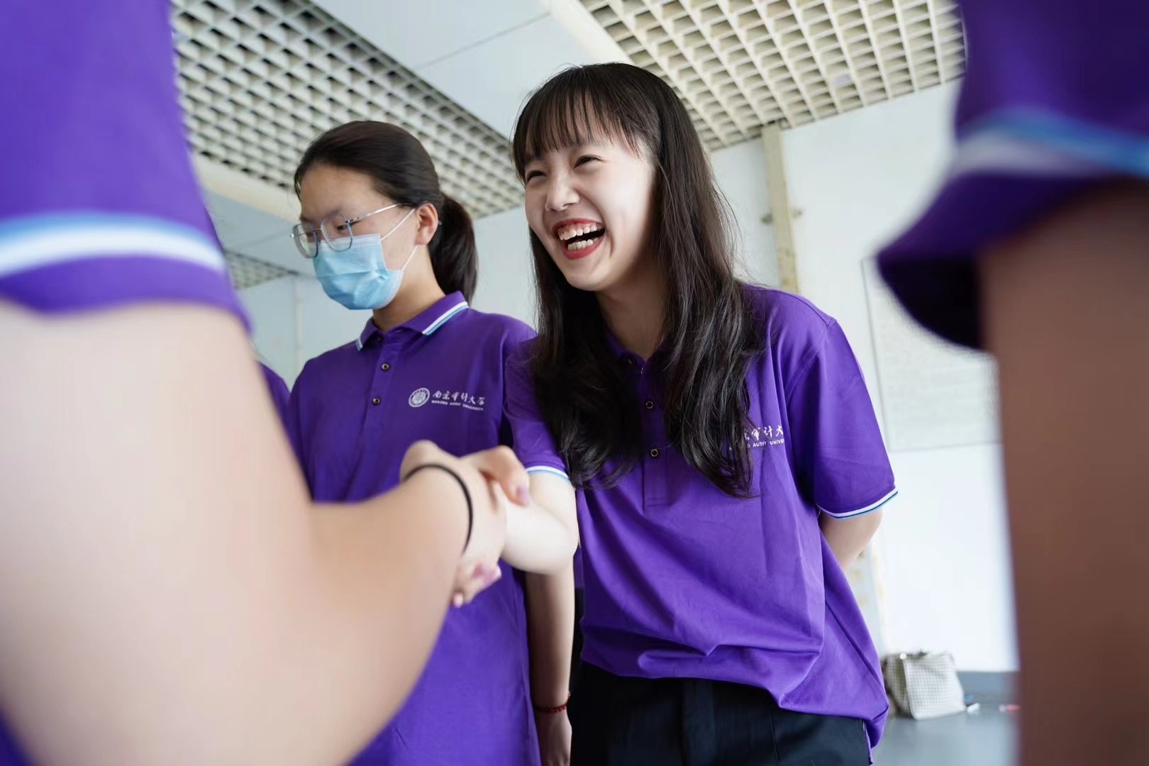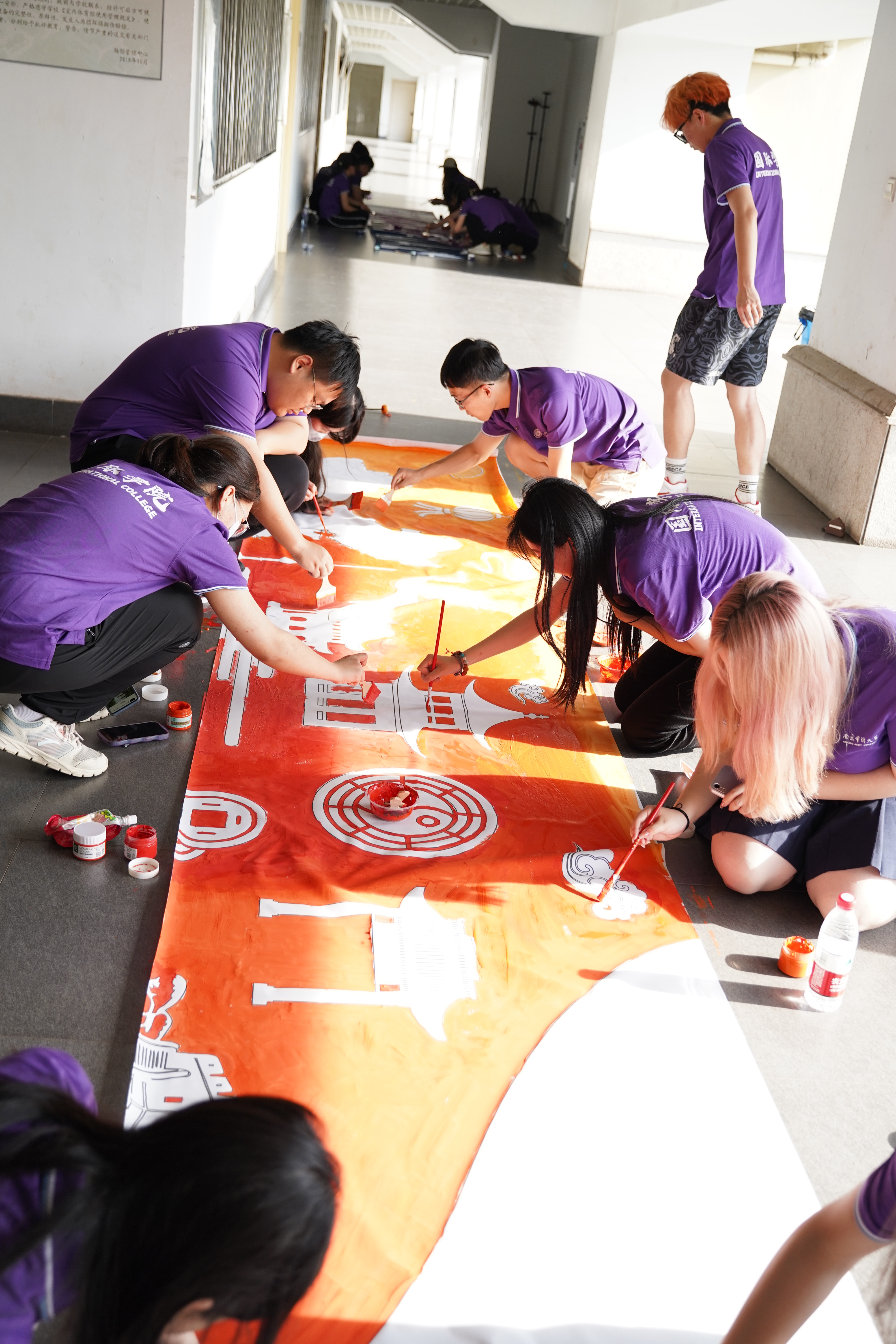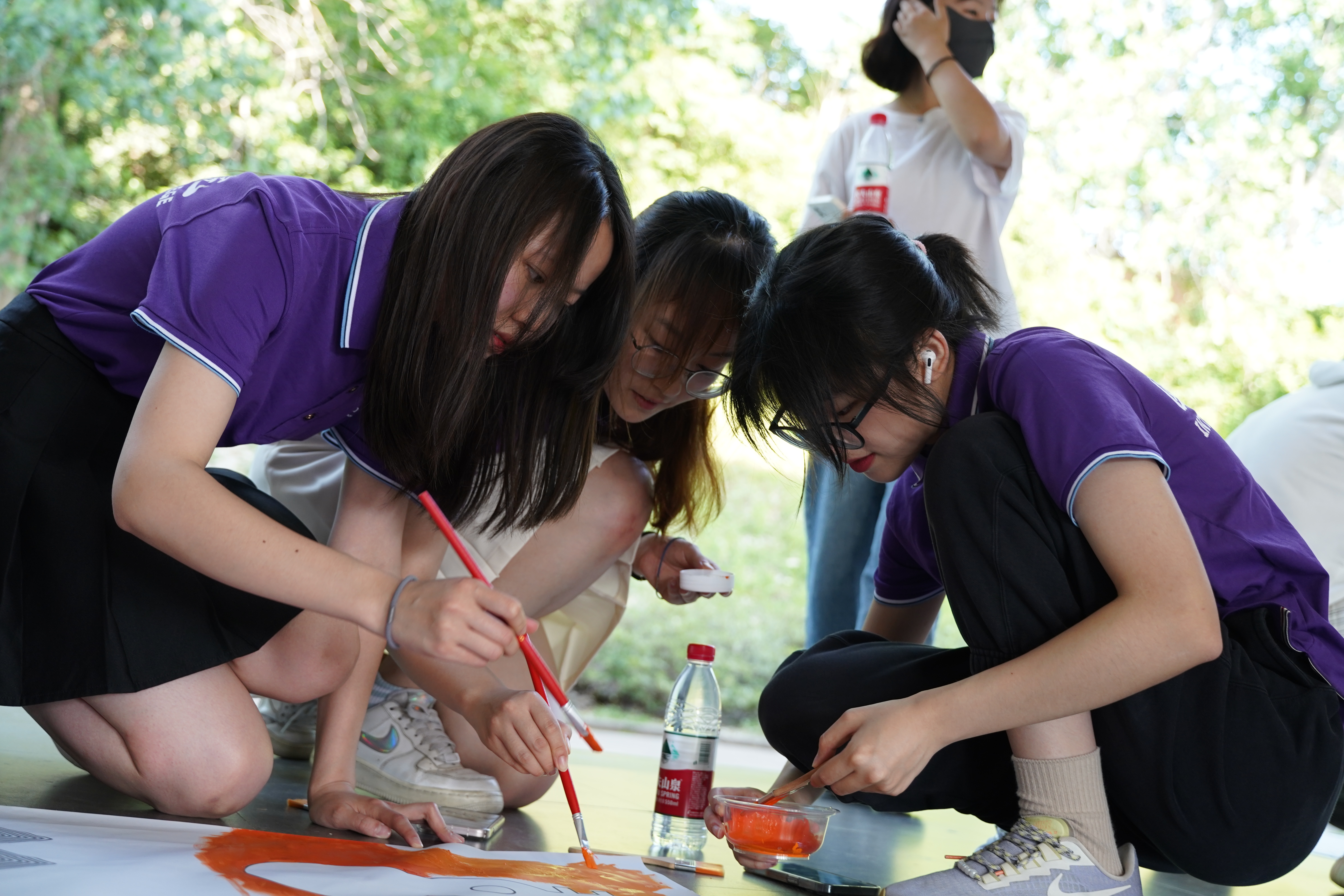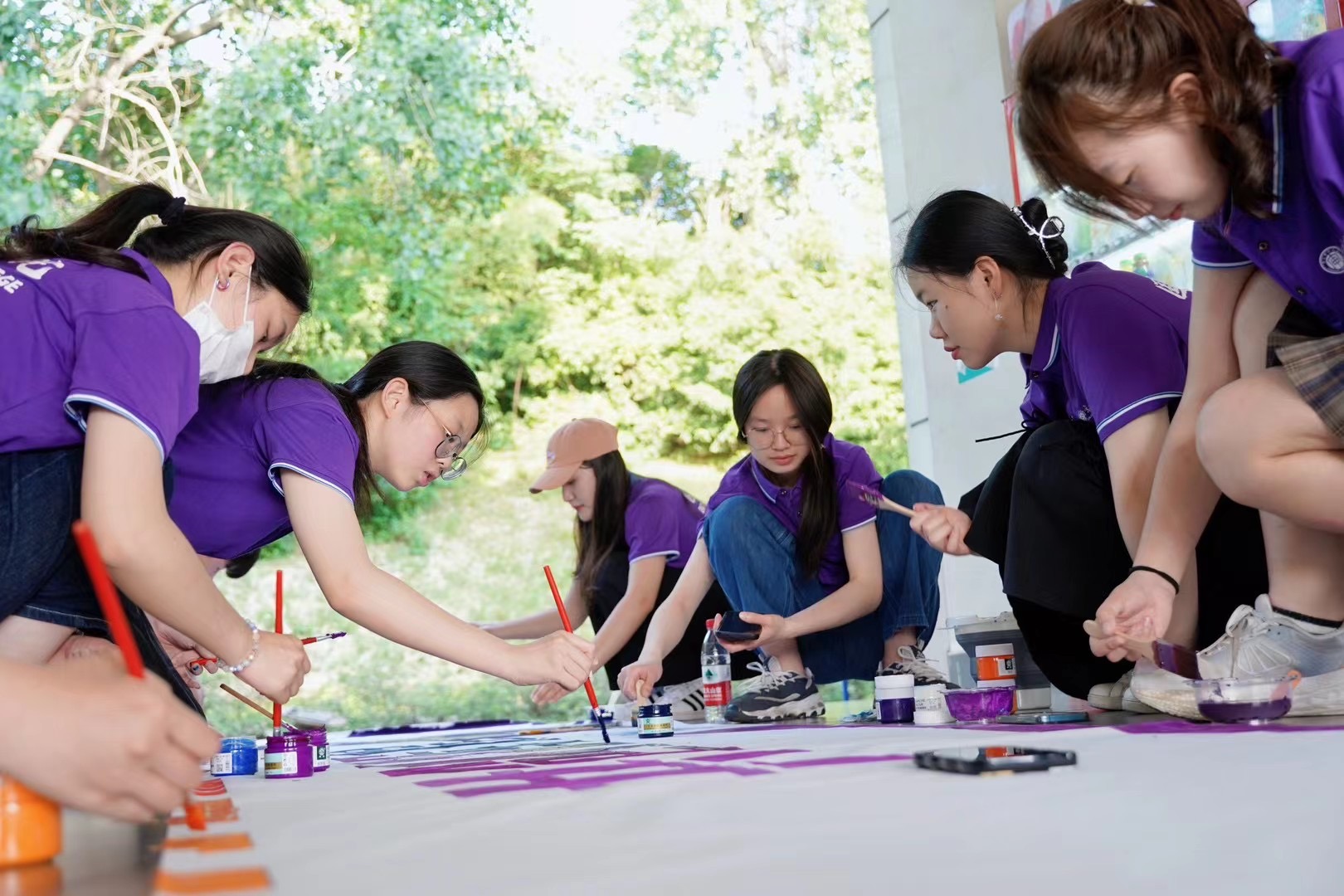 伴随着欢声笑语,“共绘蓝图”活动正式开始。鲜艳的颜料、流畅的画笔在画卷上欢快流动。画卷以紫色和红色为基调,分别是代表国际联合审计学院的“国际紫”和南审四十周年校庆logo的“活力红”。在一笔一画中,在色彩变幻中,同学们用心感受这幅画卷带来的青春意义。